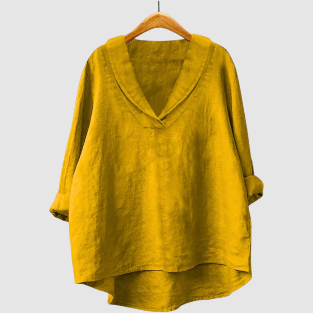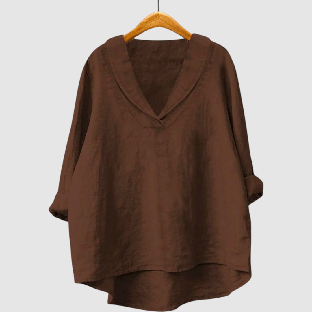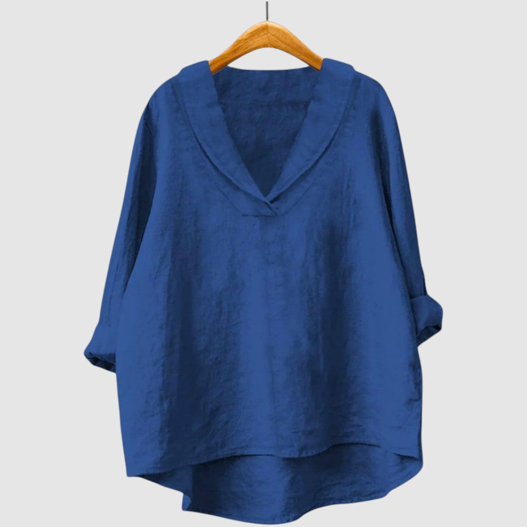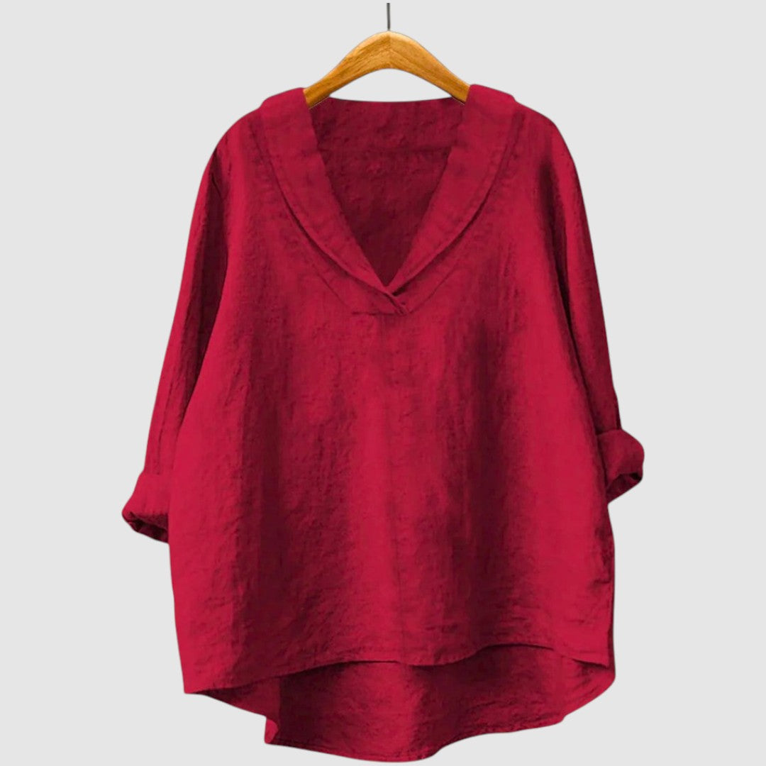 Tato halenka je perfektní volbou pro ženy, které hledají pohodlný a elegantní kousek pro každodenní nošení. Díky volnějšímu střihu poskytuje maximální komfort a snadno se kombinuje s džíny, sukněmi i kalhotami. Výstřih do V dodává jemný a ženský vzhled.