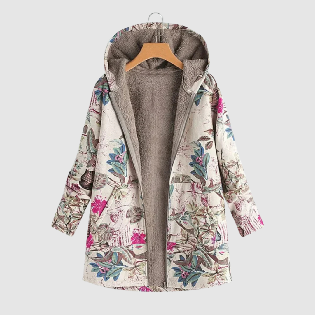 Tento kabát je skvělou volbou pro ženy, které chtějí spojit praktičnost s originálním stylem. Díky měkké vnitřní podšívce vás zahřeje i v chladnějším počasí, zatímco květinový vzor dodává outfitu jedinečný charakter. Praktická kapuce a kapsy zvyšují komfort při každodenním nošení.
