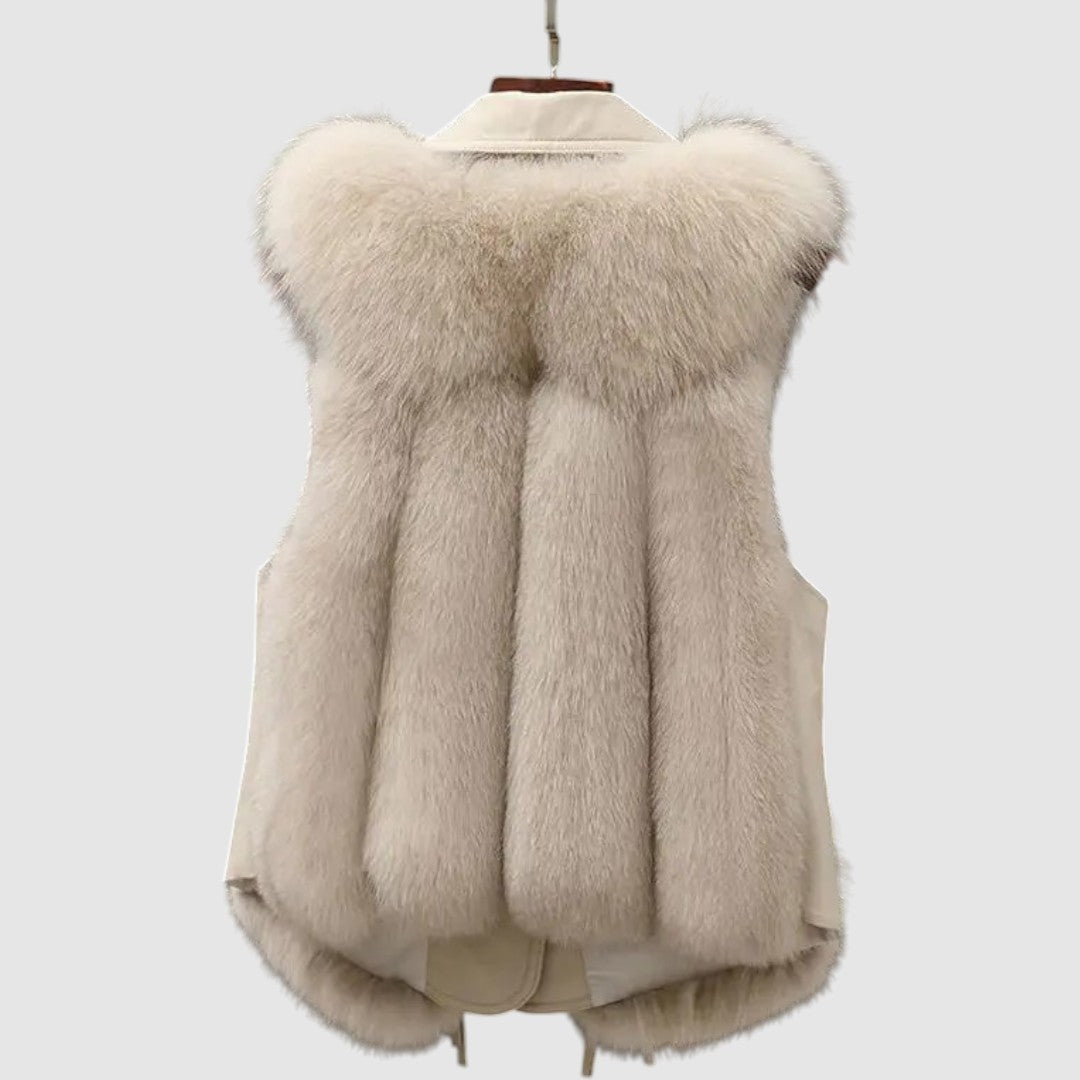 Tato elegantní vesta je skvělým doplňkem, který dodá vašemu outfitu styl a zároveň poskytne pohodlí i v chladnějším počasí. Kombinace moderního střihu a kožešinového vzhledu působí luxusně a jedinečně. Perfektně se hodí k šatům, svetrům i košilím.