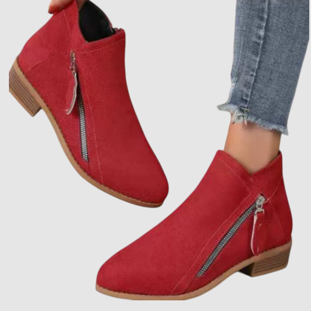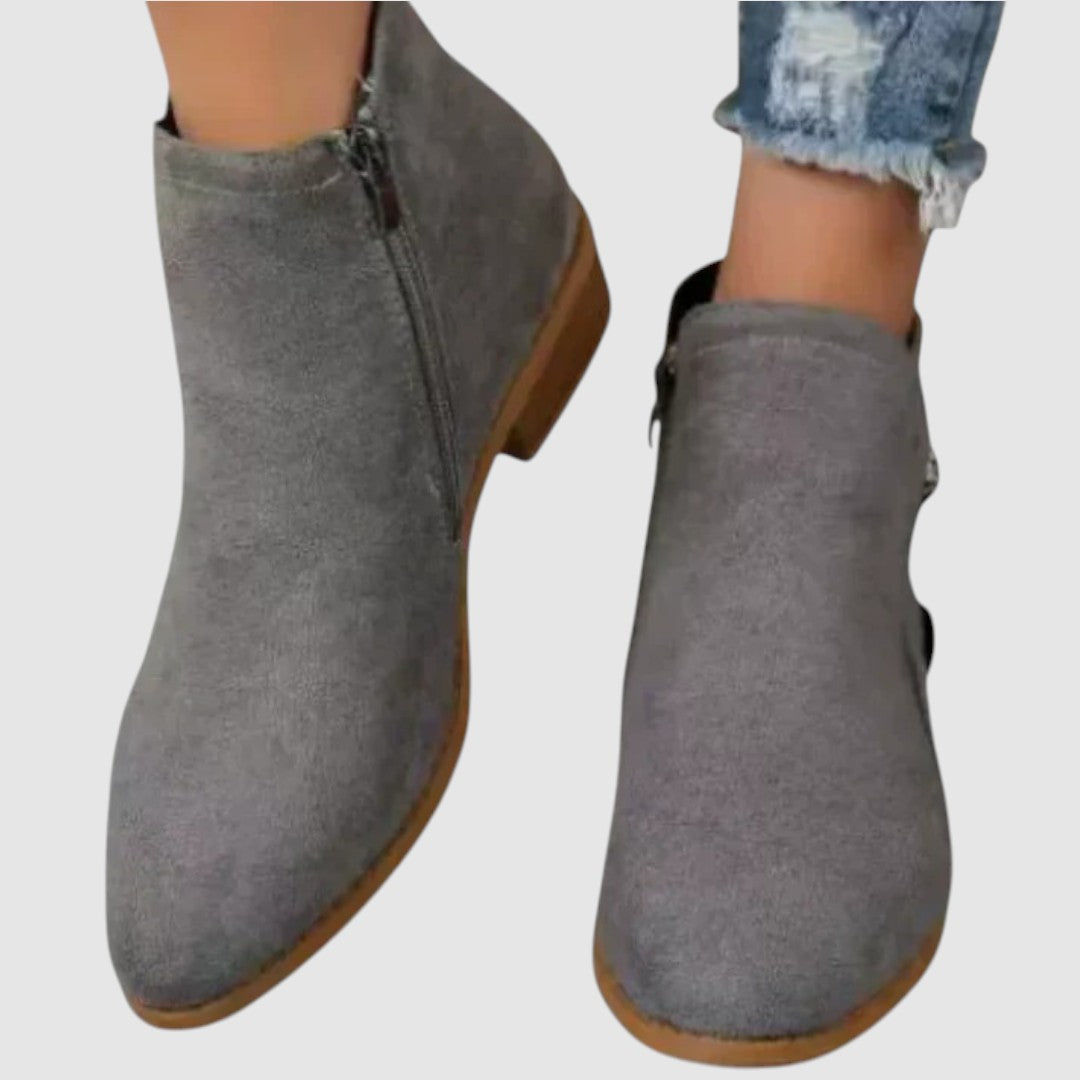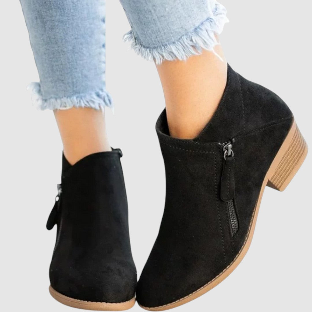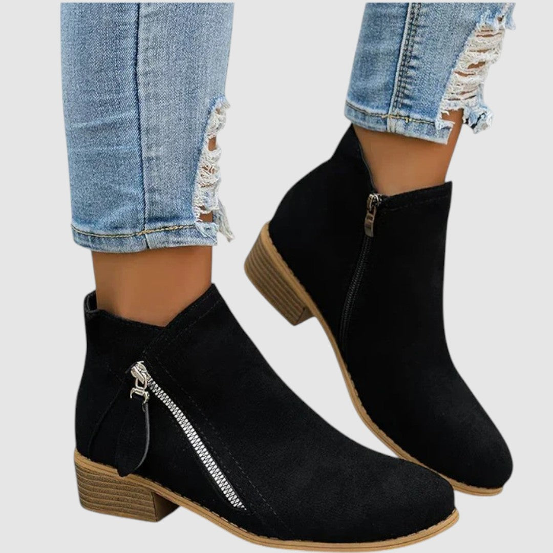 Tyto moderní kotníkové boty jsou ideální volbou pro každodenní nošení. Kombinují stylový vzhled s pohodlným střihem, který poskytuje stabilitu a komfort po celý den. Díky praktickému zipu se snadno obouvají a skvěle doplní váš outfit.