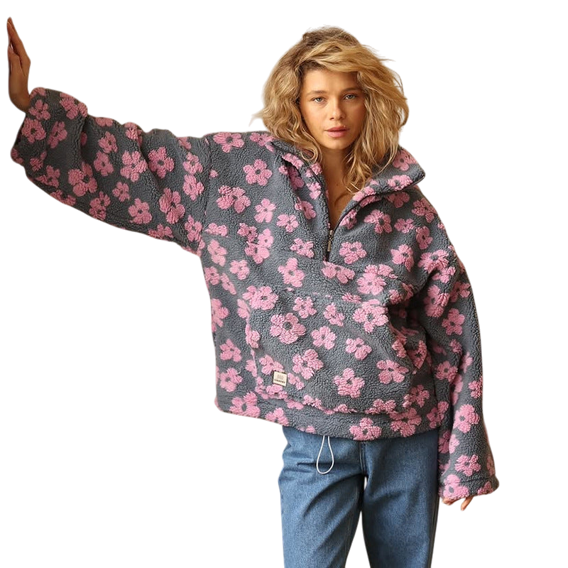 Tato fleesová mikina EZORA to mění díky měkkému materiálu, hravým vzorům a uvolněnému střihu.