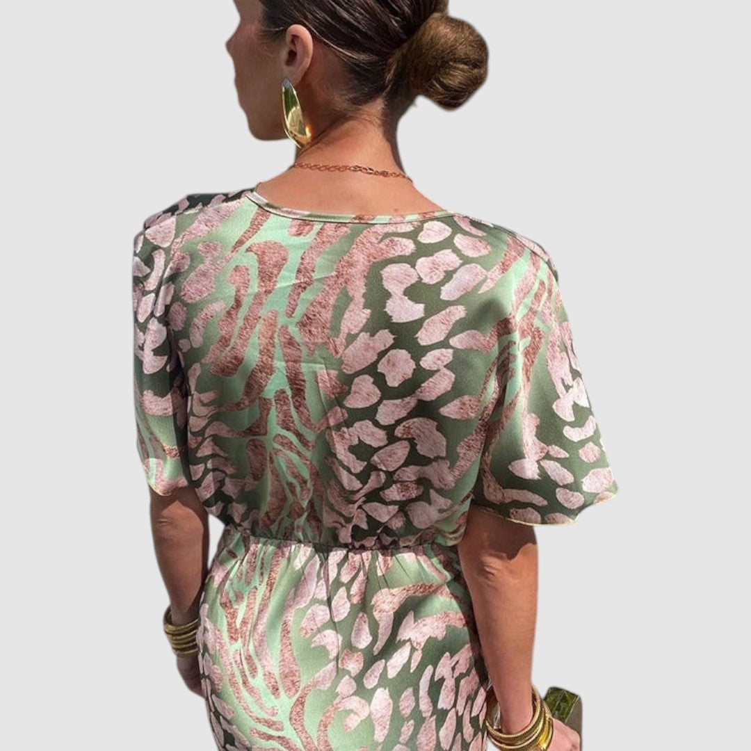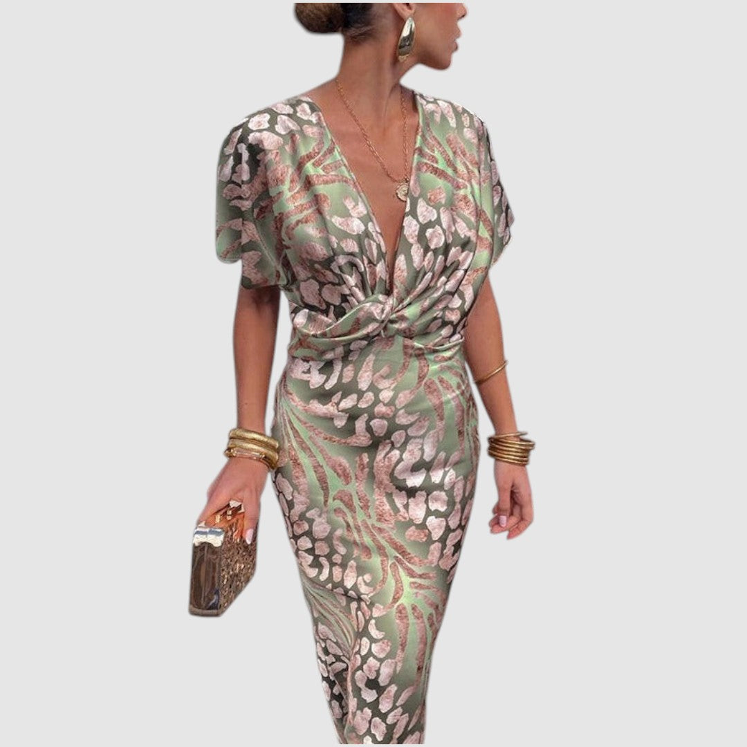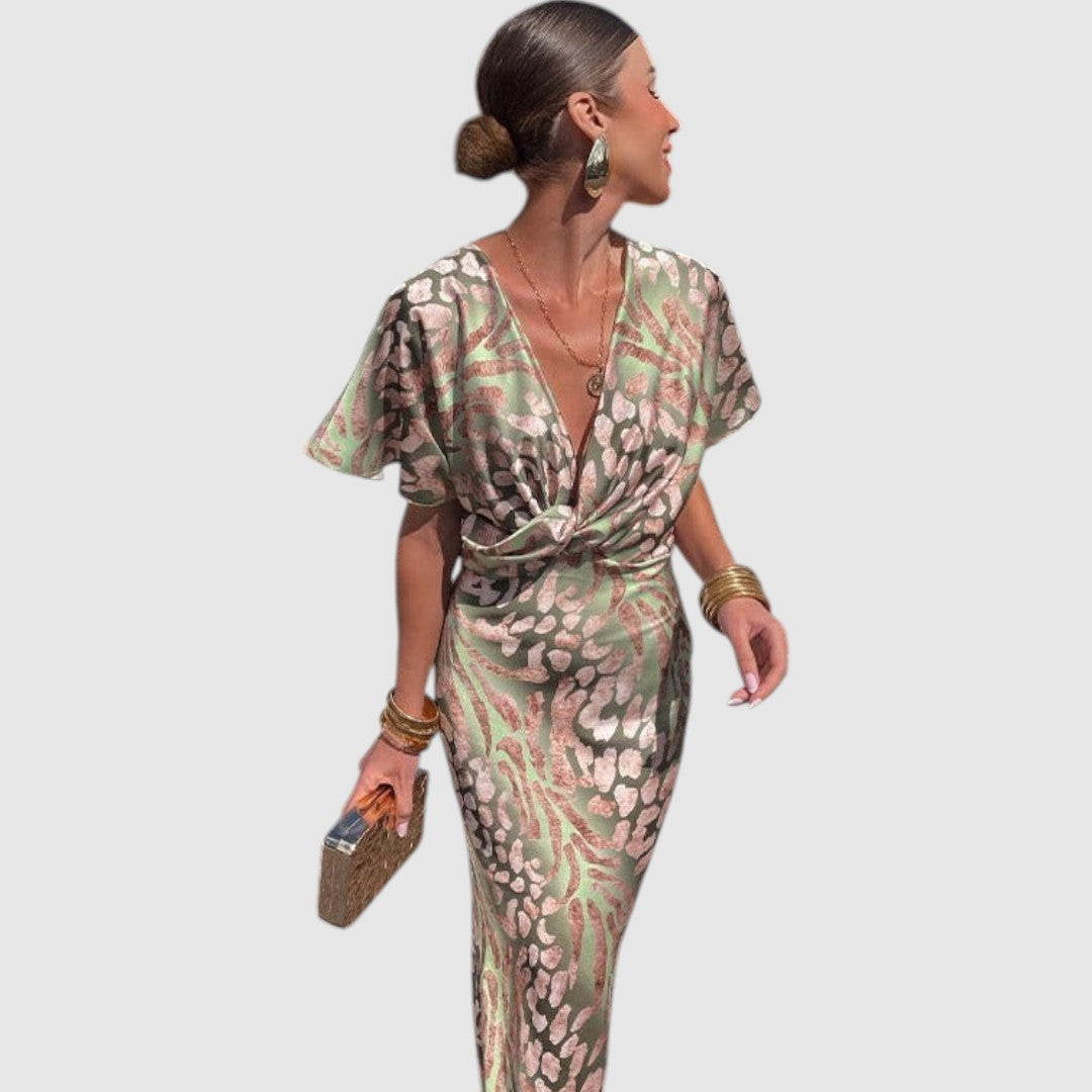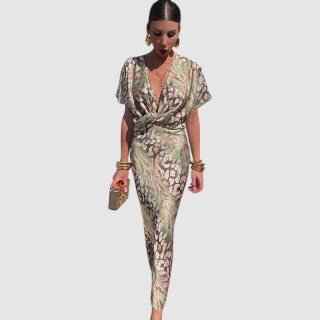 Tyto šaty jsou perfektní volbou pro společenské události i večerní příležitosti. Díky sofistikovanému střihu s uzlem v pase zdůrazňují ženskou siluetu a poskytují mimořádně elegantní vzhled. Lehký materiál a atraktivní potisk dodávají kompletu luxusní vzhled.