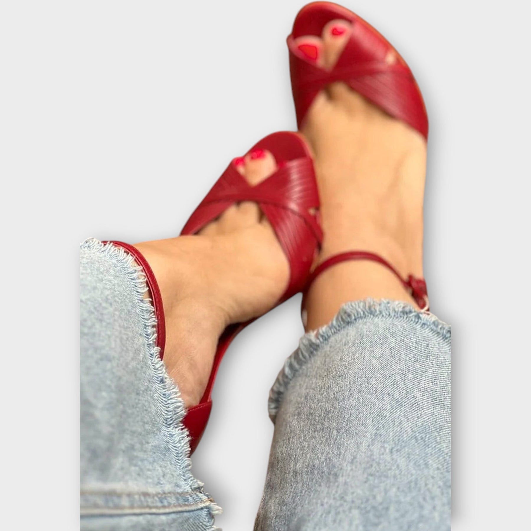 Dokonalé sandály pro ty, kteří rádi vynikají stylem. Intenzivní červený odstín, tenký podpatek a elegantní úplet vpředu činí tento model neodolatelným. Perfektní kousek pro letní večery nebo zvláštní příležitosti.